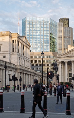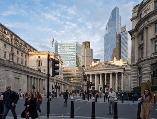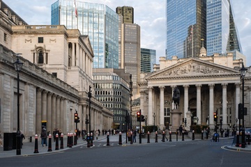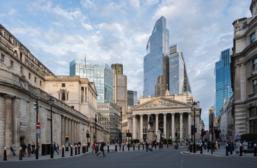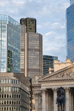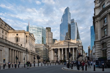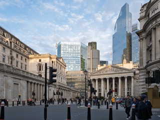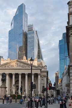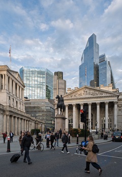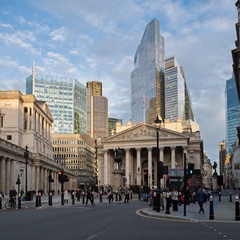 Classic buildings around the Bank junction in the City of London, London, UK.