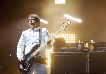 The Stone Roses performing at the Etihad Stadium, Manchester, England on the 15th June 2016. Mani - bass guitar.