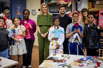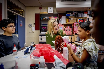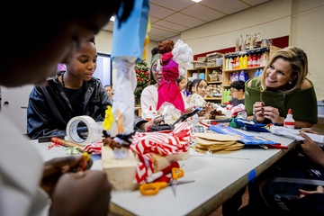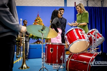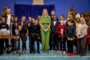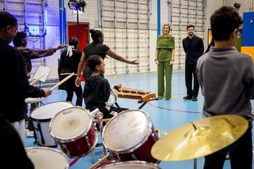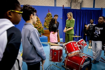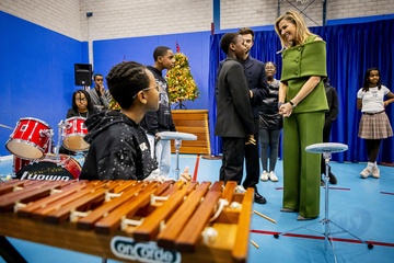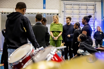 Queen Máxima visits participating school, largest school band in the Netherlands, Amsterdam, The Netherlands
