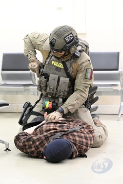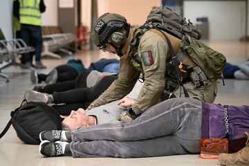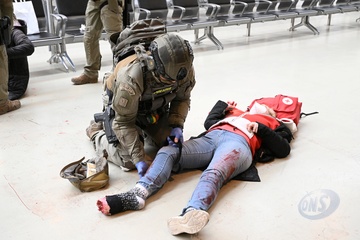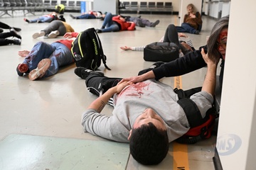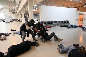 Counterterrorism exercise featuring simulated police and civil defense operations with the support of the Red Cross to test the response of hospitals in the capital.