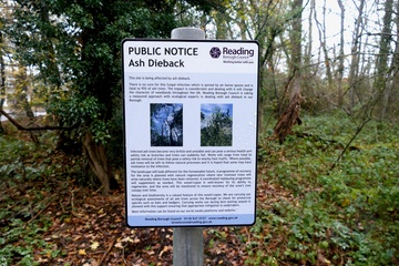 Information points installed in nature reserve after ash die back causes over 100 trees to be felled leaving exposed canopy cover and widened walkway