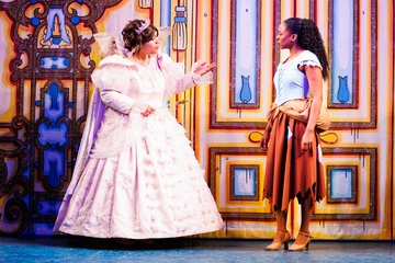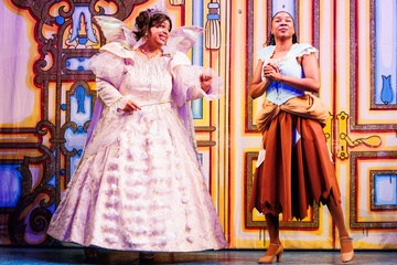 Jade Johnson as the Fairy Godmother and Siobhan James as Cinderella in the Cinderella Panto at the Hackney Empire in London on 2 December 2025