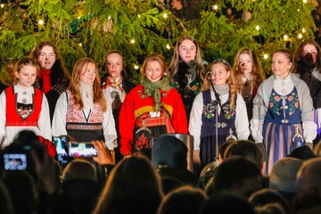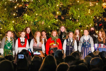 Trafalgar Square Christmas Tree Lighting Ceremony photocall, London, UK