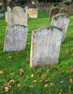 Grave stones at St Andrew's church, Soham near Ely , Cambridgeshire. UK