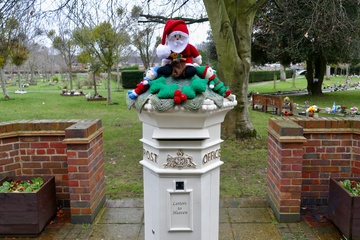 A letters from heaven post box has been decorated with a Christmas themed topper