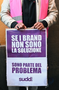 Sudd Cobas protests subcontracting and calls for a social clause in the fashion industry.