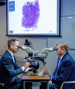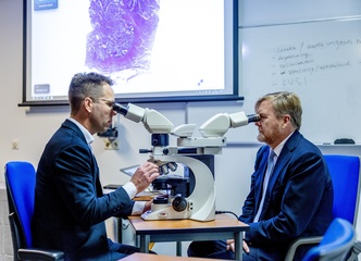 King and Minister Bruijn on a working visit to the Leiden University Medical Center, Leiden, The Netherlands