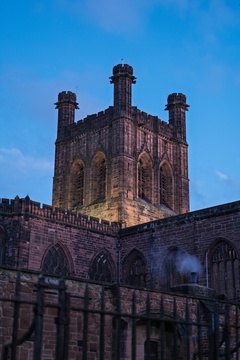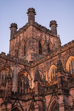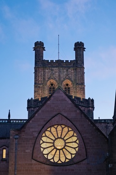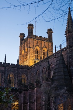 Chester cathedral at Christmas time. Chester, Cheshire, North west England.