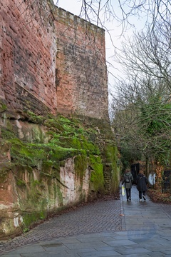 Roman garden and walls by the River Dee. Chester, Cheshire, North west England.