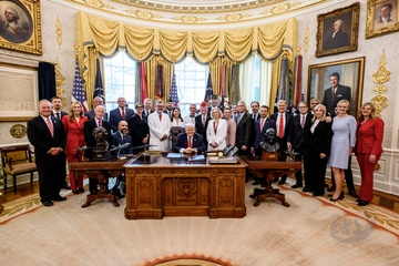 President Donald Trump signs an executive order reclassifying marijuana as a Schedule III substance