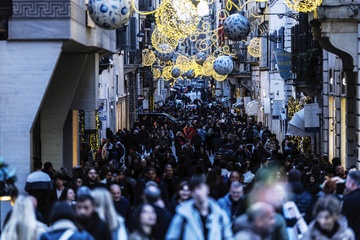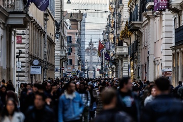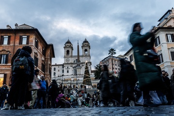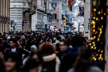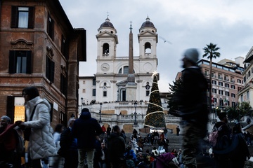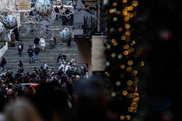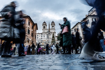 Romans and tourists in the historic center during Christmas week