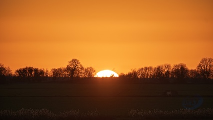 Setting sun in the fens near Ely, Cambridgeshire, UK.