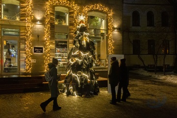 Christmas Tree of Light made from electricians’ uniforms shines in central Kyiv