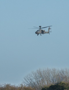 Low flying Apache helicopter near USAF Mildenhall in Cambridgeshire, UK
