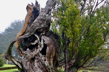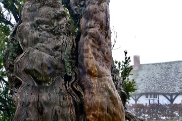 The 1000 year old Aldworth Yew tree which has been struck by lightning and blown over in a storm it is still partly alive.
