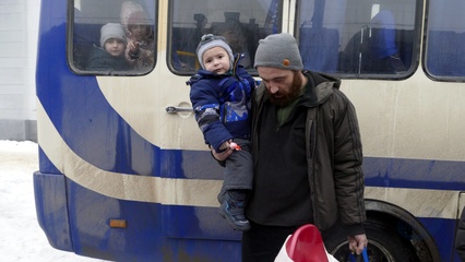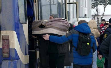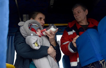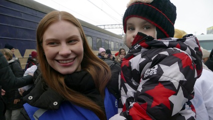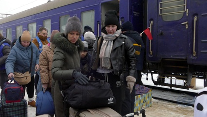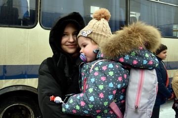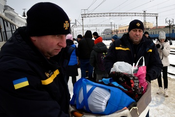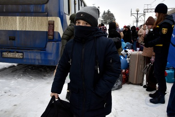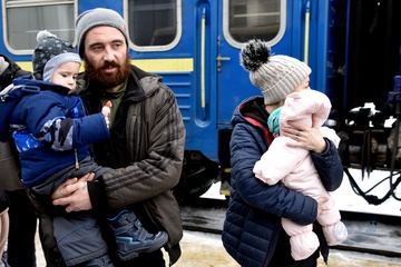 Evacuation train from frontline areas arrives at Mukachevo railway station