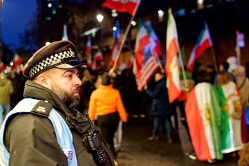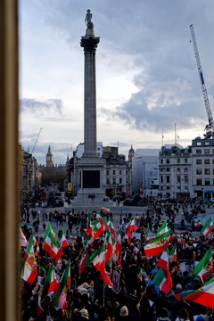 Free Iran protest. Trafalgar Square to Iranian Embassy. 17th January 2026.