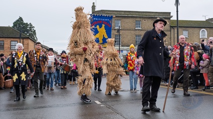Here a straw bear parades and dances through the streets along with various Molly / Morris dancers. 14