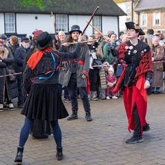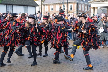 Morris dancers at Whittlesea straw bear festival,held every January in the little town of Whittlesey / Whittlesea in Cambridgeshire, near Peterborough, UK.