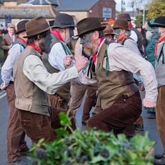 Old Glory morris dancers perform at Whittlesea straw bear festival,held every January in the little town of Whittlesey / Whittlesea in Cambridgeshire, near Peterborough, UK.
