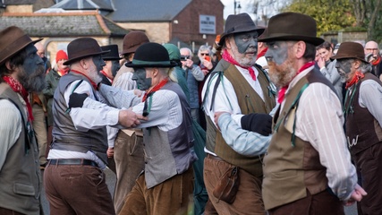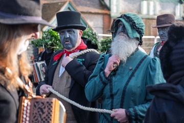 Here a straw bear parades and dances through the streets along with various Moll