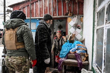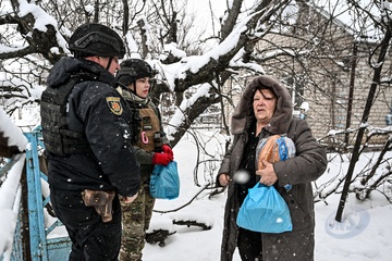 Police deliver humanitarian aid to residents of frontline Huliaipole district