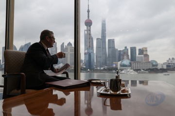 Prime Minister Keir Starmer walks on the Bund in Shanghai