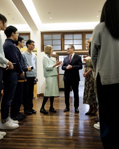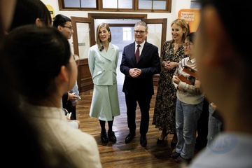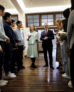 Prime Minister Keir Starmer and Rosamund Pike arts visit