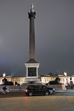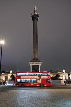 Nelsons Column at night in Trafalgar Square. London. UK
