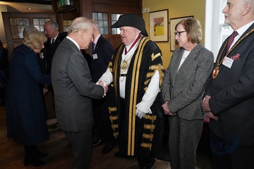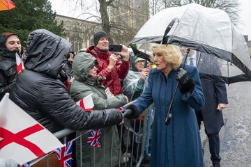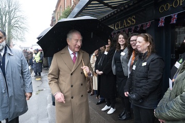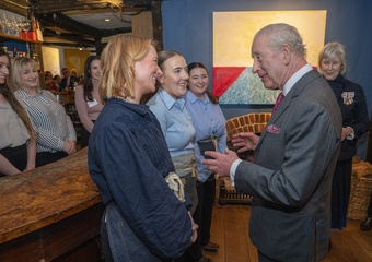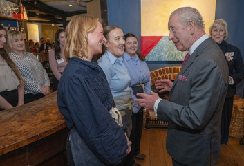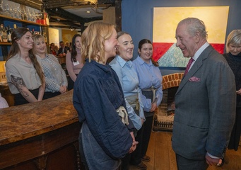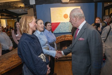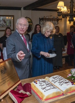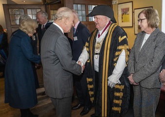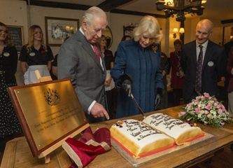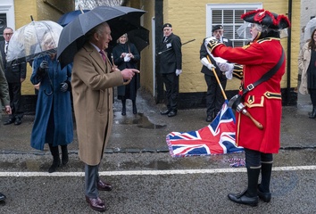 Their Majesties The King and Queen met local community heroes at The Sun Inn, Dedham, Essex, later the royal couple visited a tea party at the Essex Rose Teahouse. High Street,.Dedham, Colchester CO7 6DF..The Sun Inn Dedham, a characterful 15th-centu