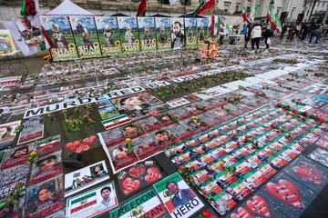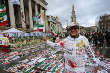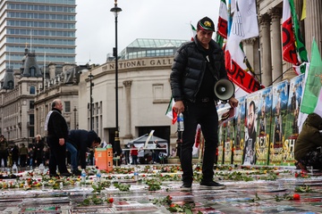 Memorial for victims of Iranian government in Trafalgar Square in London, UK, on 07 February 2026