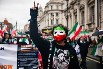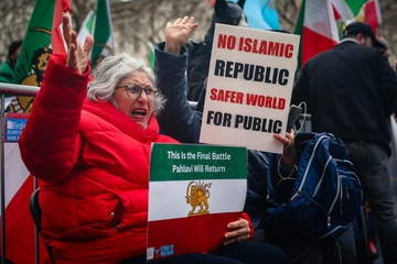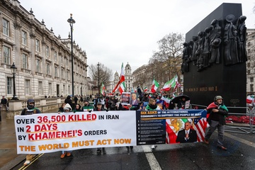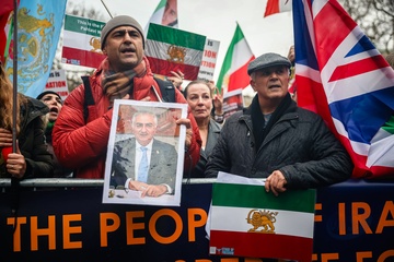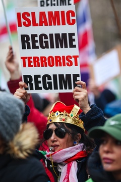 March supporting Iranian uprising outside Downing Street in London, UK, on 07 February 2026