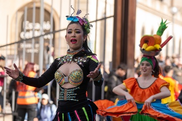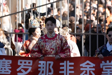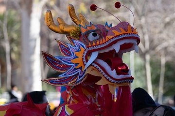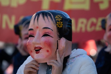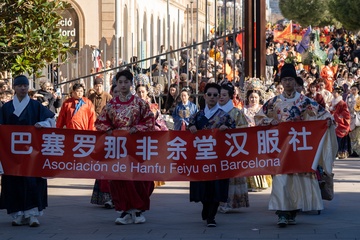 Traditional Chinese New Year parade in Barcelona, celebrating the Year of the Horse 2026.