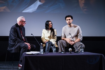 Mark Kermode, Posy Sterling and Archie Madekwe on stage at Mark Kermode in 3D on Monday 9 February 2026