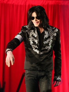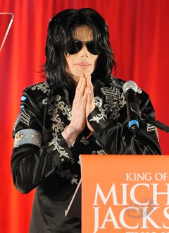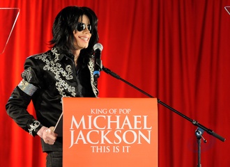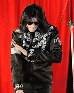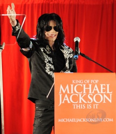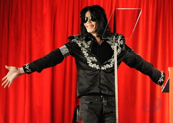 Michael Jackson na konferencji prasowej zapowiedzial serie koncertow w londynskiej O2 Arena, Londyn