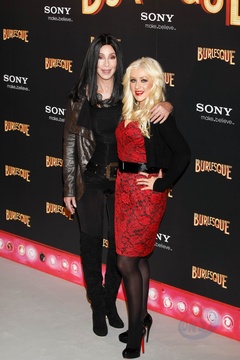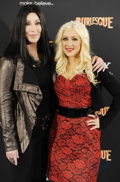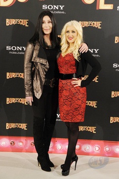 Cher i Christina Aguilera na premierze ''Burlesque'' w Madrycie, Hiszpania