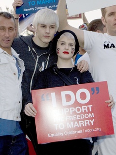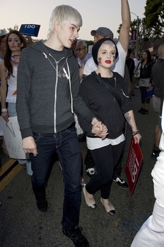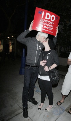 Kelly Osbourne i Luke Worrell protestuja przeciwko Propozycji 8, zabraniajacej malzenstw homoseksualnych, USA