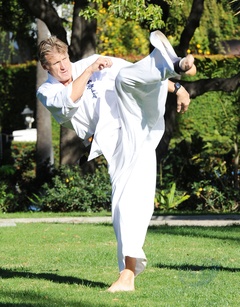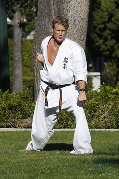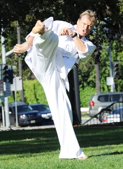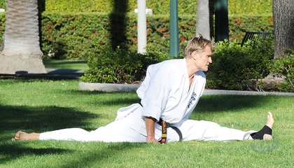 Dolph Lundgren trenuje sztuki walki w parku w Beverly Hills