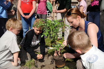 Ekologiczny Dzien Matki ktory zorganizowaly Fundacja Nasza Ziemia i Fundacja Sprzatanie Swiata Polska przed Instytutem Gluchoniemych im Falkowskiego Warszawa