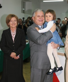 Lech Kaczynski z zona Maria Kaczynska i wnuczka Ewunia