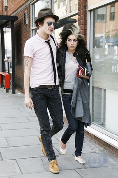 Amy Winehouse z mezem Blake Fielder Civil w drodze do banku, Londyn