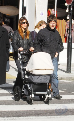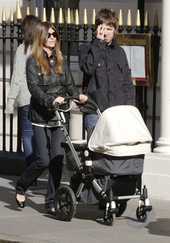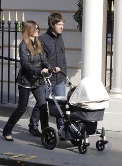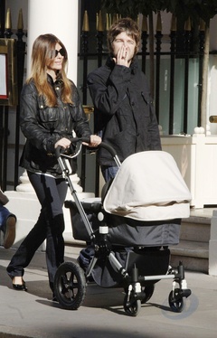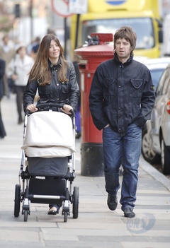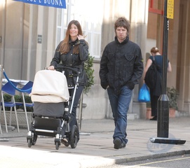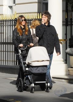 Noel Gallagher i Sara MacDonald spaceruja z dzieckiem, Londyn