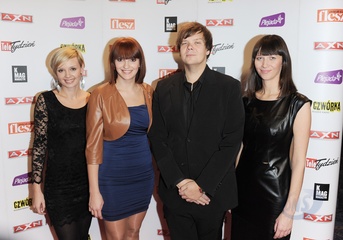 Michal Figurski, Roma Gasiorowska, Ewa Wojciechowska z hostessami