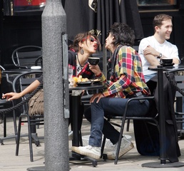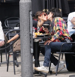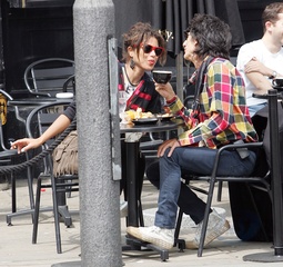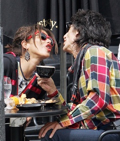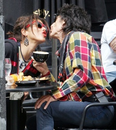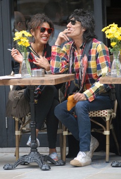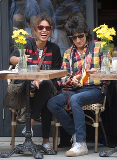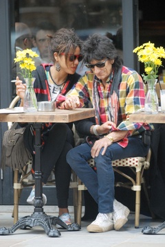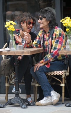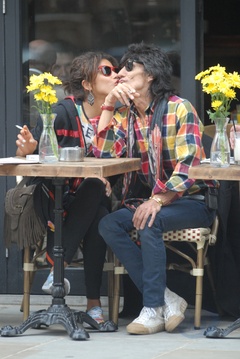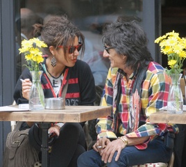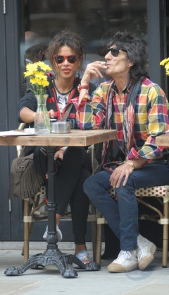 Ronnie Wood ze swoja dziewczyna w ogrodku kawiarnianym, Londyn