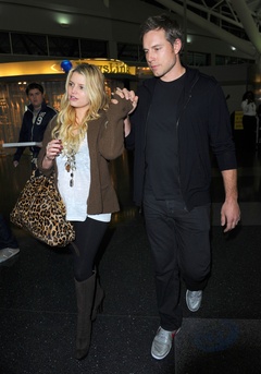 Jessica Simpson i jej narzeczony Eric Johnson na lotnisku, Nowy Jork