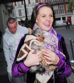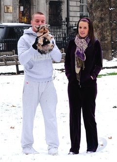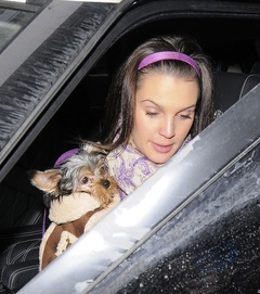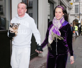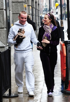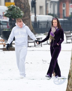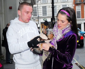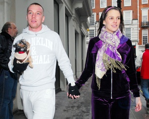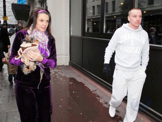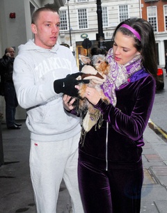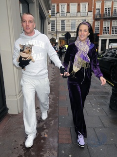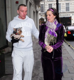 Danielle Lloyd i jej narzeczony Jamie O'Hara na spacerze z psem, Londyn