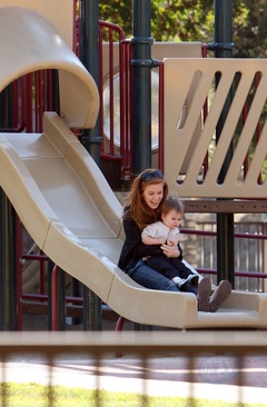 Isla Fisher z corka Olive na placu zabaw, Los Angeles