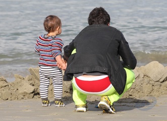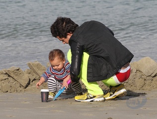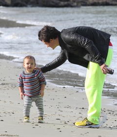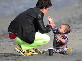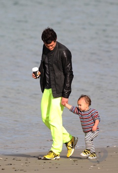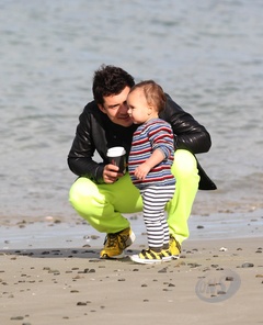 Orlando Bloom z synkiem na plazy w Wellington, Nowej Zelandia