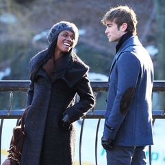 Chace Crawford i Tika Sumpter na planie 'Gossip Girl'