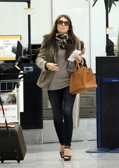 Elizabeth Hurley na lotnisku w Londynie